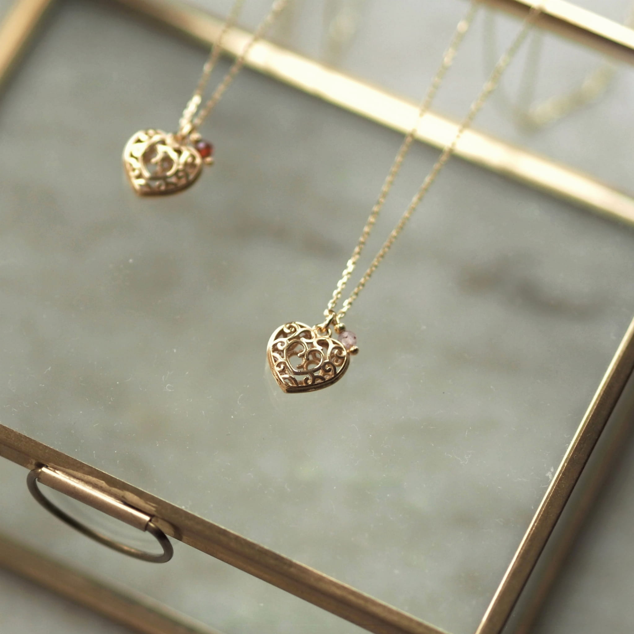 Naszyjnik z kolekcji L'amour ze srebra próby 925 pozłacanego 24-karatowym złotem. Dwustronne ażurowe serce (12x13 mm) z maleńkim wisiorkiem z naturalnym kwarcem truskawkowym w kolorze delikatnego różu (wielkość kamienia: 3 mm), którego znaczenie jest mocno związane z symboliką serca.