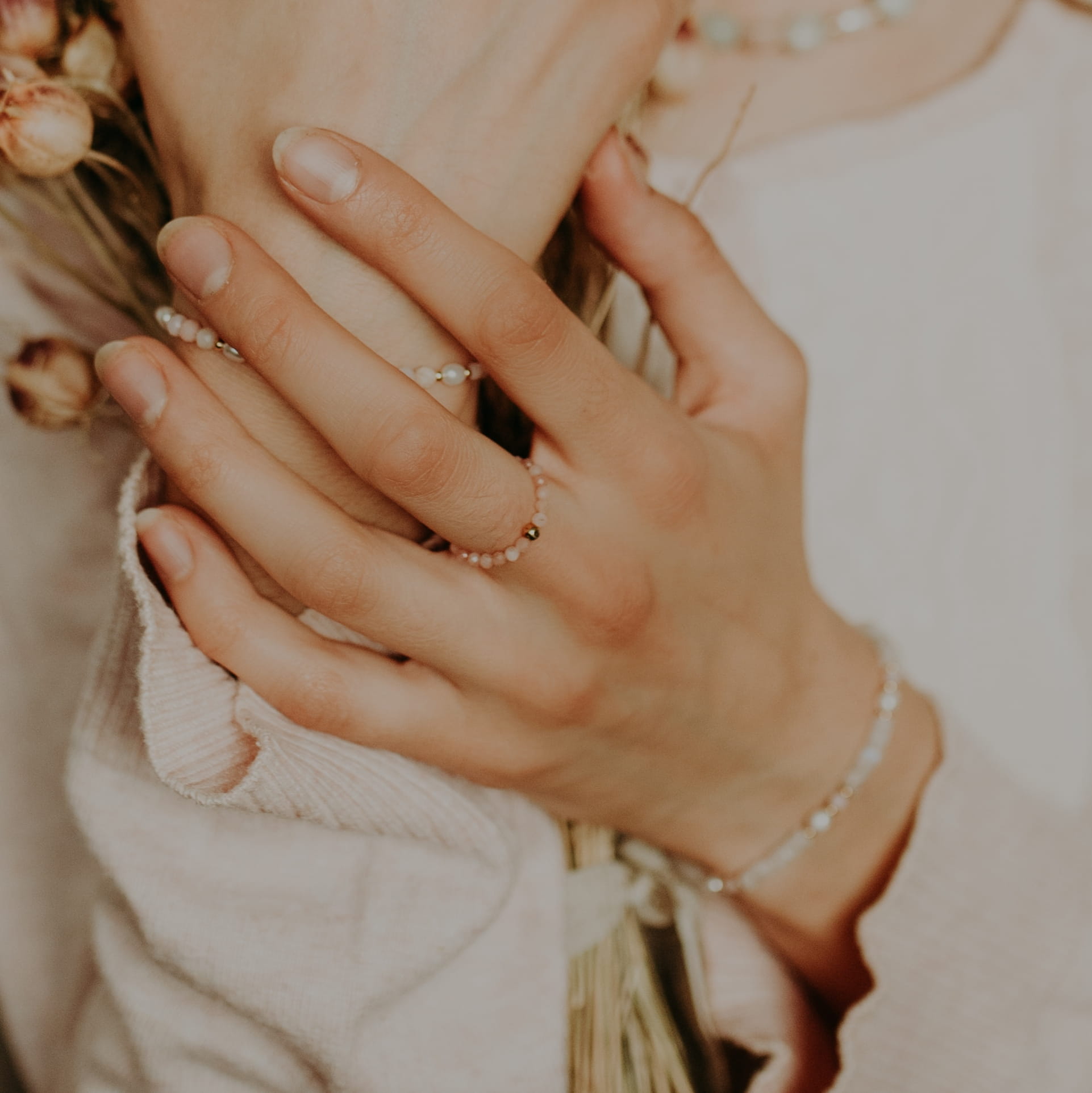 Pierścionek na elastycznej gumce jubilerskiej. Bardzo wygodny, dopasowuje się do palca.