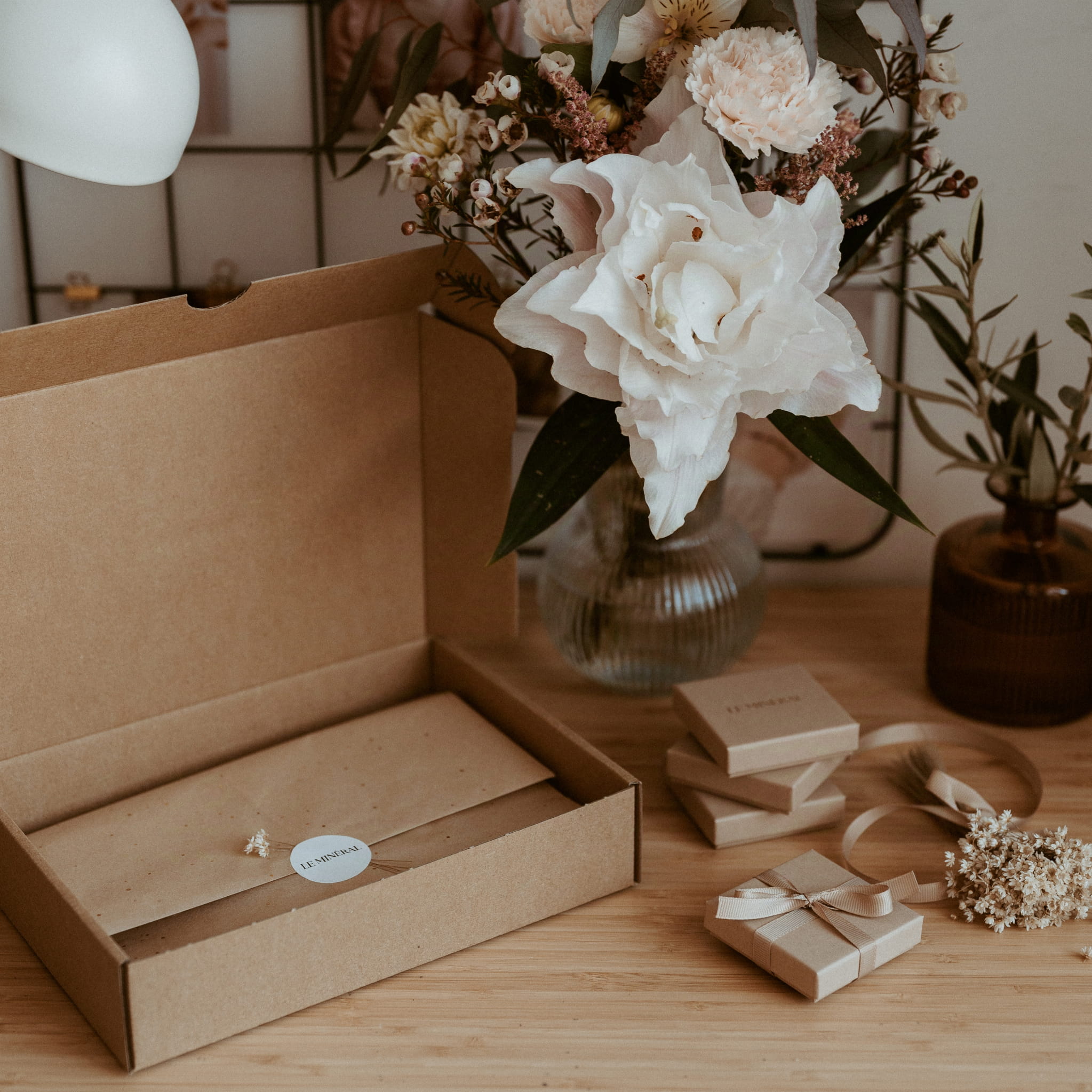 Biżuteria wykonana jest z dbałością o każdy szczegół i starannie zapakowana w pudełeczko ze złotym logo, z dodatkiem ulotki, na której napisane są użyte kamienie oraz instrukcja pielęgnacji biżuterii. Całość zawinięta jest w papier z połyskującymi drobinkami, zaklejony firmową naklejką i przyozdobiony suszkami. Następnie zawartość trafia do kartonika ze złotym logo. Tak zapakowana biżuteria z powodzeniem może być wręczona jako prezent, ale istnieje również możliwość dokupienia pakowania na prezent.