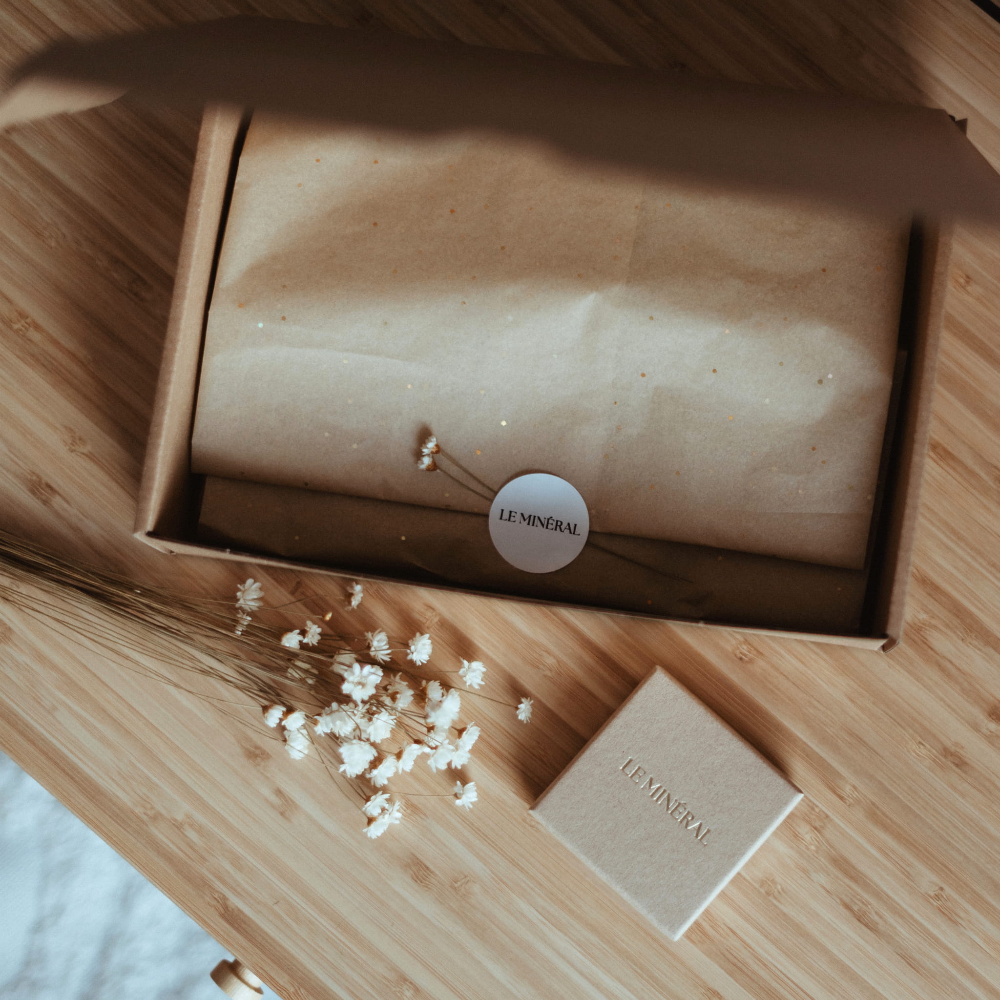 Biżuteria wykonana jest z dbałością o każdy szczegół i starannie zapakowana w pudełeczko ze złotym logo, z dodatkiem ulotki, na której napisane są użyte kamienie oraz instrukcja pielęgnacji biżuterii. Całość zawinięta jest w papier z połyskującymi drobinkami, zaklejony firmową naklejką i przyozdobiony suszkami. Następnie zawartość trafia do kartonika ze złotym logo. Tak zapakowana biżuteria z powodzeniem może być wręczona jako prezent, ale istnieje również możliwość dokupienia pakowania na prezent.