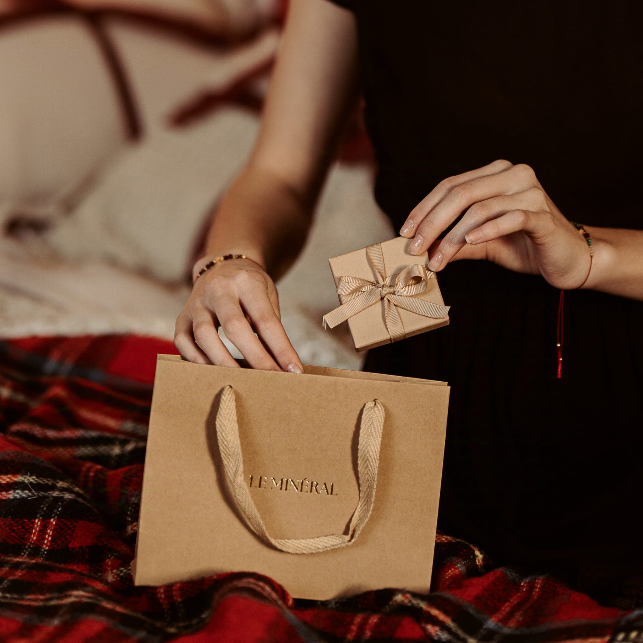 Biżuteria wykonana jest z dbałością o każdy szczegół i starannie zapakowana w pudełeczko ze złotym logo, z dodatkiem ulotki, na której napisane są użyte kamienie oraz instrukcja pielęgnacji biżuterii. Całość zawinięta jest w papier z połyskującymi drobinkami, zaklejony firmową naklejką i przyozdobiony suszkami. Następnie zawartość trafia do kartonika ze złotym logo. Tak zapakowana biżuteria z powodzeniem może być wręczona jako prezent, ale istnieje również możliwość dokupienia pakowania na prezent.