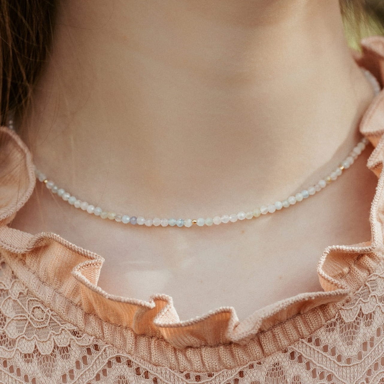 Cukierkowy naszyjnik z wielokolorowych, naturalnych morganitów w kształcie fasetowanych kulek i średnicy 3 mm. Na mocnej lince jubilerskiej. Solidne zakończenia przy zapięciu. Wykonano w całości ze srebra próby 925 pozłacanego 24-karatowym złotem. Długość: 38 cm + 4 cm przedłużki. Na życzenie istnieje możliwość zmiany długości (projekt indywidualny).