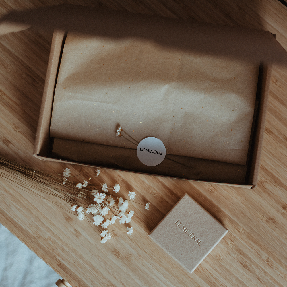 Biżuteria wykonywana jest z dbałością o każdy szczegół i starannie zapakowana w pudełeczko ze złotym logo, z dodatkiem ulotki, na której napisane są użyte kamienie oraz instrukcja pielęgnacji biżuterii. Całość zawinięta jest w papier z połyskującymi drobinkami, zaklejony firmową naklejką i przyozdobiony suszkami. Następnie zawartość trafia do kartonika ze złotym logo. Tak zapakowana biżuteria z powodzeniem może być wręczona jako prezent, ale istnieje również możliwość dokupienia pakowania na prezent.