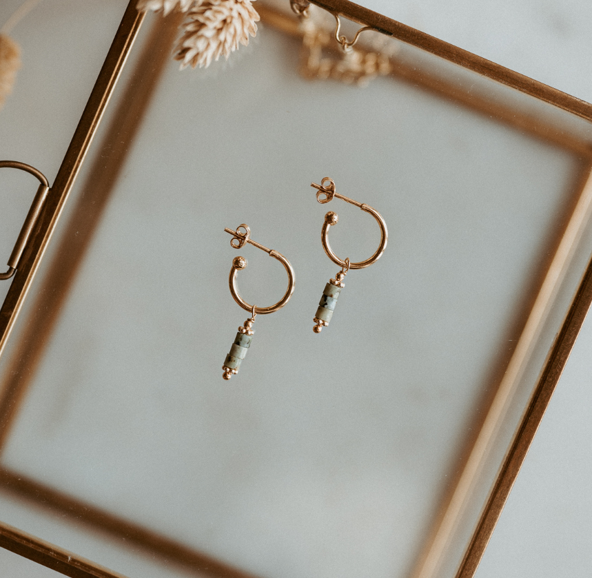 Biżuteria wykonywana jest z dbałością o każdy szczegół i starannie zapakowana w pudełeczko ze złotym logo, z dodatkiem ulotki, na której napisane są użyte kamienie oraz instrukcja pielęgnacji biżuterii. Całość zawinięta jest w papier z połyskującymi drobinkami, zaklejony firmową naklejką i przyozdobiony suszkami. Następnie zawartość trafia do kartonika ze złotym logo. Tak zapakowana biżuteria z powodzeniem może być wręczona jako prezent, ale istnieje również możliwość dokupienia pakowania na prezent.