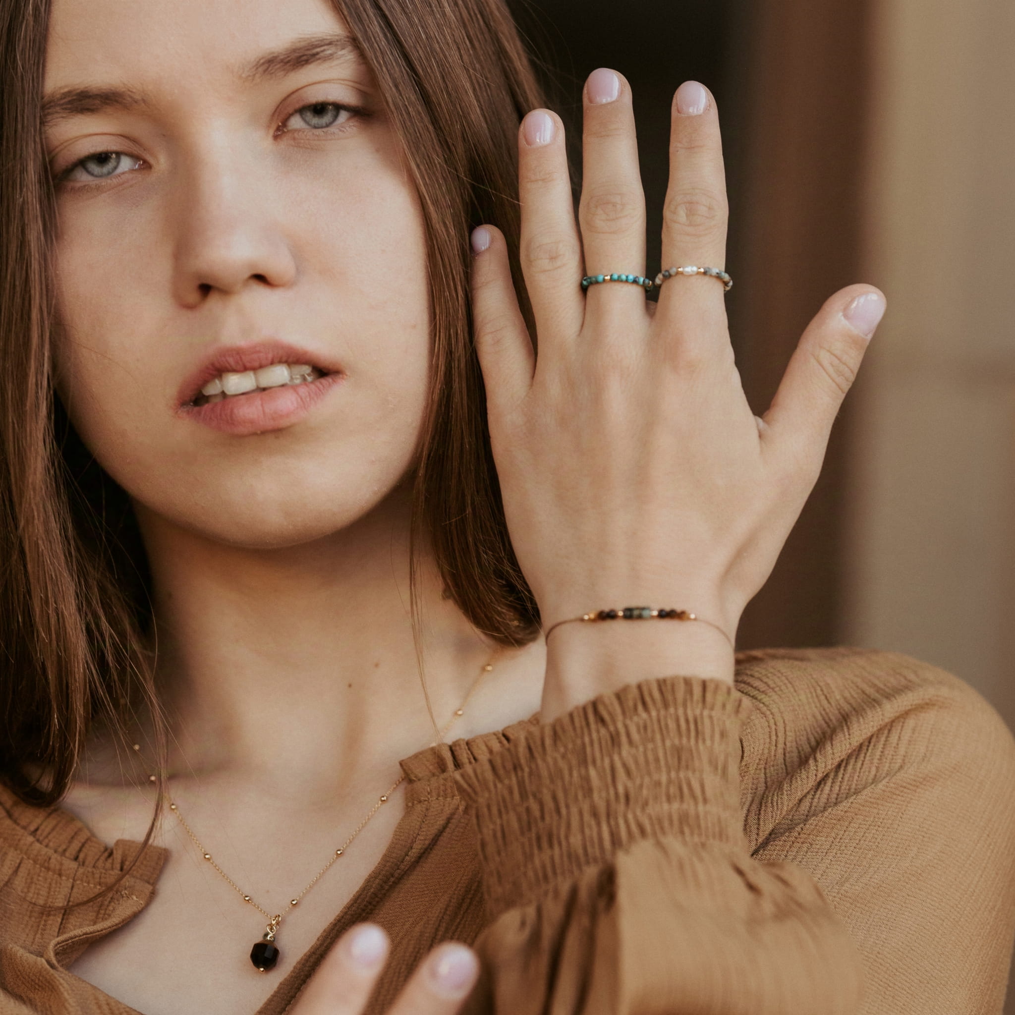 Perły cechują się działaniem ochronnym. Pomagają się rozwijać, docenić życie, czerpać z niego pełnymi garściami. Symbolizują szczerość, uczciwość i mądrość. Turkus koi, wzmacnia relacje międzyludzkie i sprzyja pozytywnemu myśleniu.